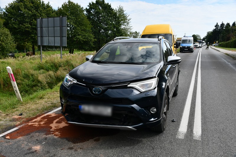 W zdarzeniu ucierpiał podróżujący toyotą 8-latek i został przewieziony do szpitala. Obrażenia, jakich doznał nie zagrażają jego życiu. Uczestnicy byli trzeźwi. Na miejscu pracowali policjanci z jedlickiego komisariatu, funkcjonariusze wydziału ruchu drogowego oraz technik kryminalistyki. Na czas prowadzonych działań, ruch na tym odcinku drogi był utrudniony.