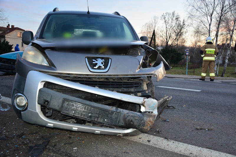 Czołowe zderzenie peugeota z oplem w Jaszczwi