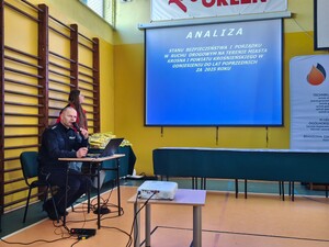 Następnie, st. asp. Arkadiusz Pałys, naczelnik Wydziału Prewencji Komendy Miejskiej Policji w Krośnie, w trakcie spotkania przedstawił analizę stanu bezpieczeństwa oraz porządku w ruchu drogowym na terenie Krosna i powiatu krośnieńskiego.
